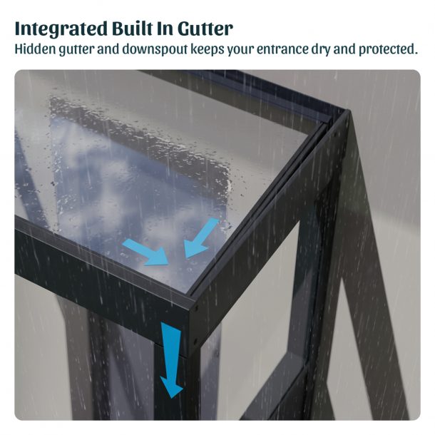 - Inbyggd ränna: Integrerad och dold ränna och stuprör som håller entrén torr och skyddad.