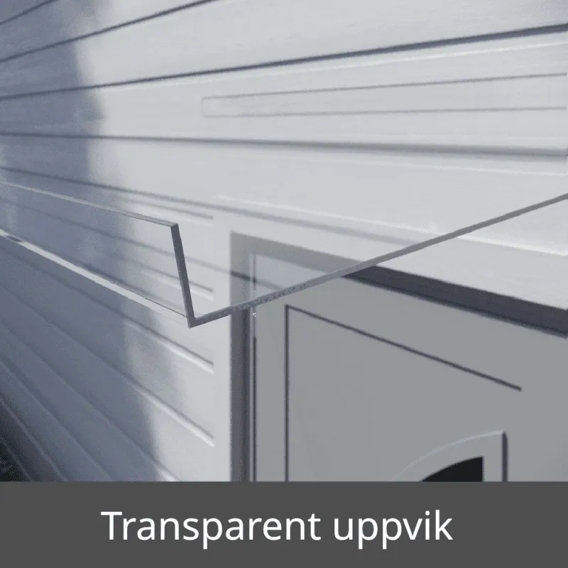 Den 100 % UV-skyddade takskivan släpper igenom ljus men minskar direkt solljus, filtrerar UV-strålar som kan få din dörr att blekna och flagna. Takskivan är tillverkad i okrossbar polykarbonat.