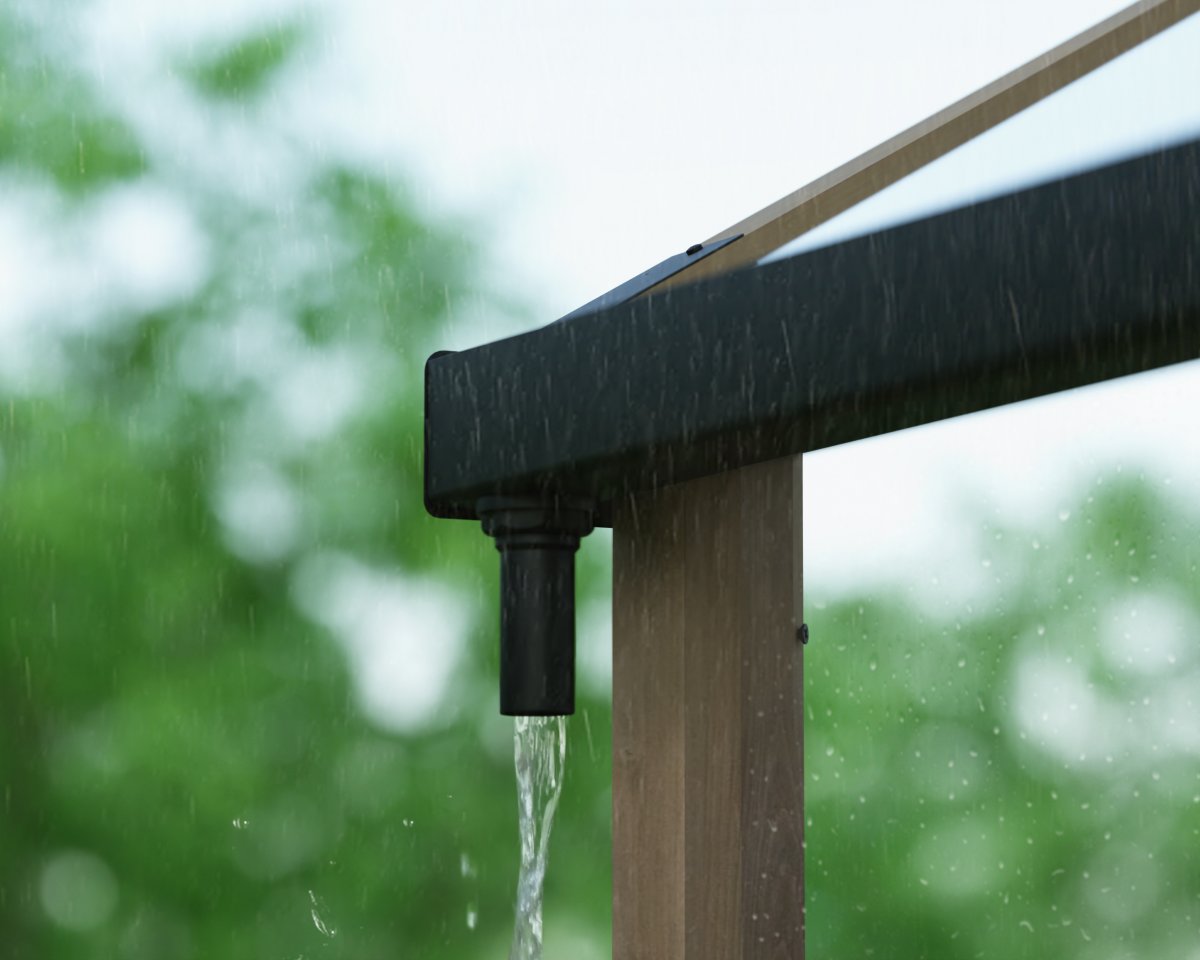 Med det inbyggda rännstenssystemet kan du samla upp regnvatten för hållbar bevattning utan extra ansträngning.