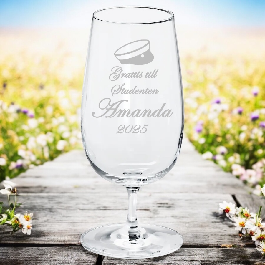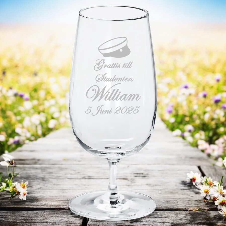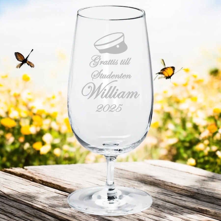 Produktbeskrivning:Vackert personligt ölglas med gravyr är den perfekta studentenpresenten!